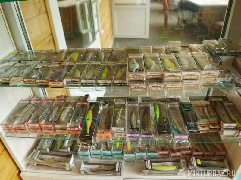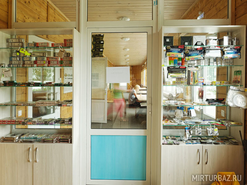 На территории расположен магазин рыболовных снастей, удочек и пр.