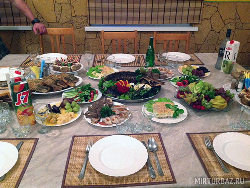 По желанию повара могут приготовить из добытой Вами рыбы и дичи отменные блюда, с радостью накроют богатый стол для всей Вашей компании! Уютный зал на 40 посадочных мест, прекрасная кухня, караоке, настольные игры и безупречный сервис не оставят Вас равнодушными.