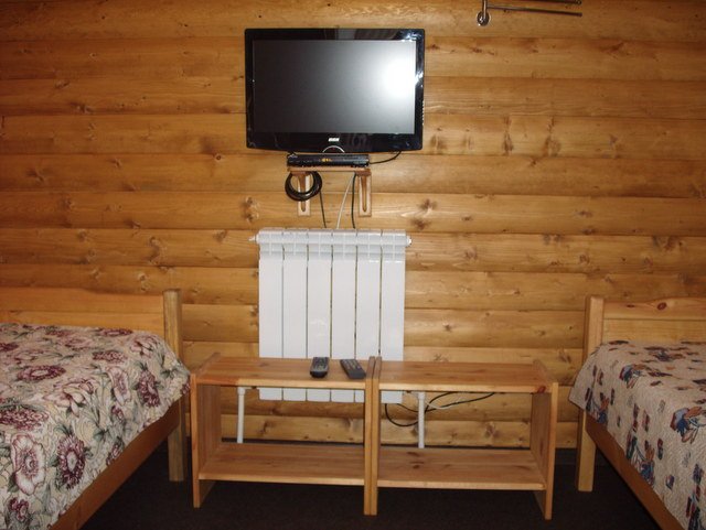 Номер с одной полутораспальной и одной двухспальной кроватями, прикроватными тумбочками, вешалками для одежды, зеркалом, отоплением и кондиционером, спутниковым телевидением.