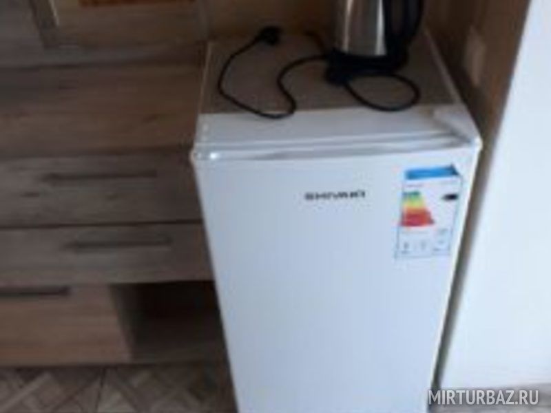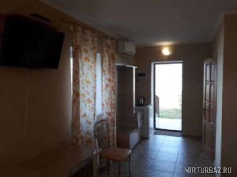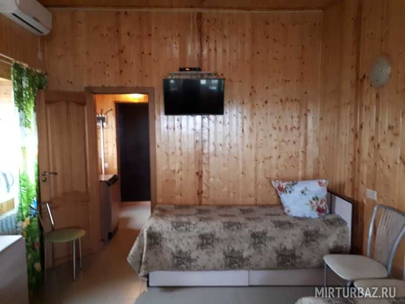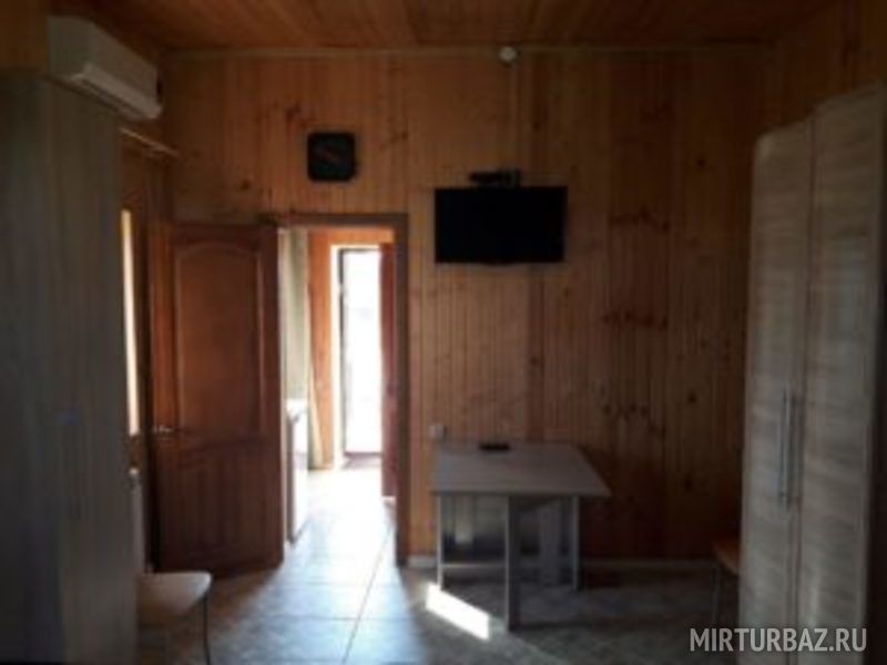 Двухместный номер в доме с двуспальной кроватью, холодильником, телевизором, обеденным столом и с/у.
