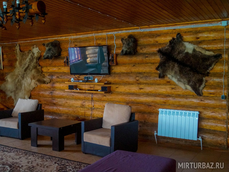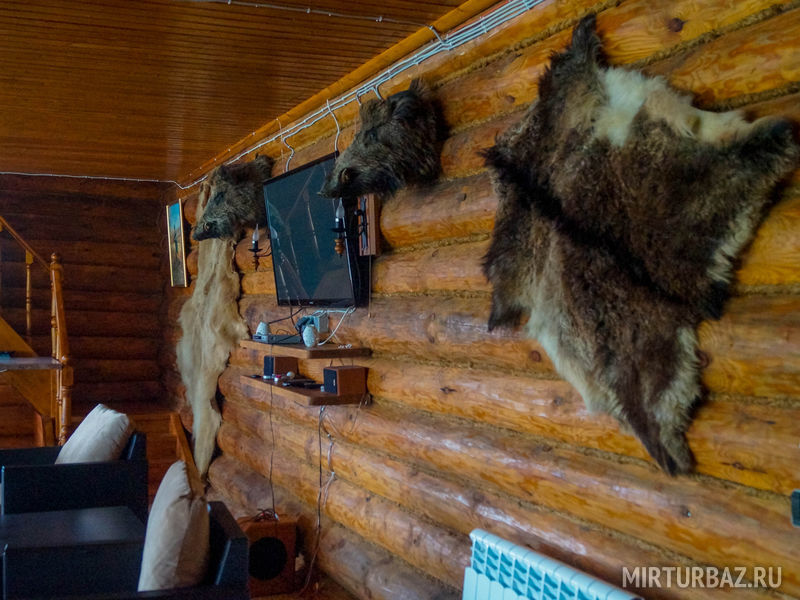 Здесь вы найдете камин, натуральные материалы отделки, удобную мебель и эффектный декор, которые создают неповторимую атмосферу охотничьего домика, адаптированного под современные условия