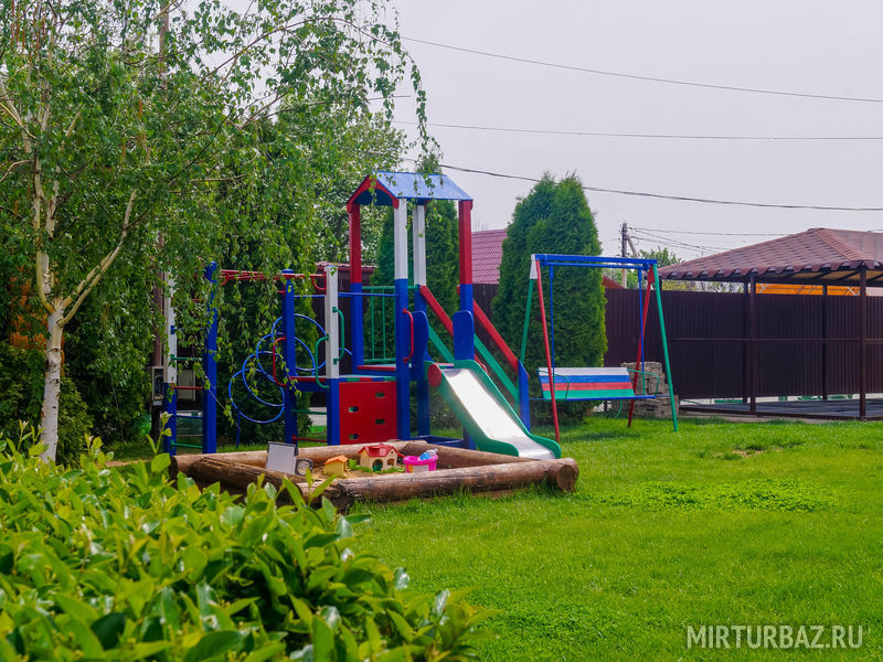 Для детей на базе оборудована детская площадка с качелями и песочницей