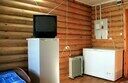Однокомнатный дом со своей летней верандой.В каждом срубе-TV,холодильник,морозильный ларь для рыбы,кондиционер,санузел с горячей и холодной водой,обеденная зона с набором посуды и эл.чайником. Веранды срубовых домов летом находятся в тени винограда. Вода,подаваемая в дома проходит многоступенчатую систему очистки ATOLL и дополнительное обеззараживание ультрафиолетом и соответствует всем санитарным нормам.
