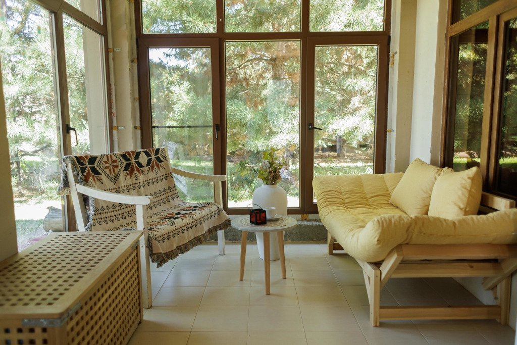 — Постельное белье, полотенца, тапочки, мыло, гель и шампунь, травяной чай, натуральный мёд и сушки, чистая питьевая вода