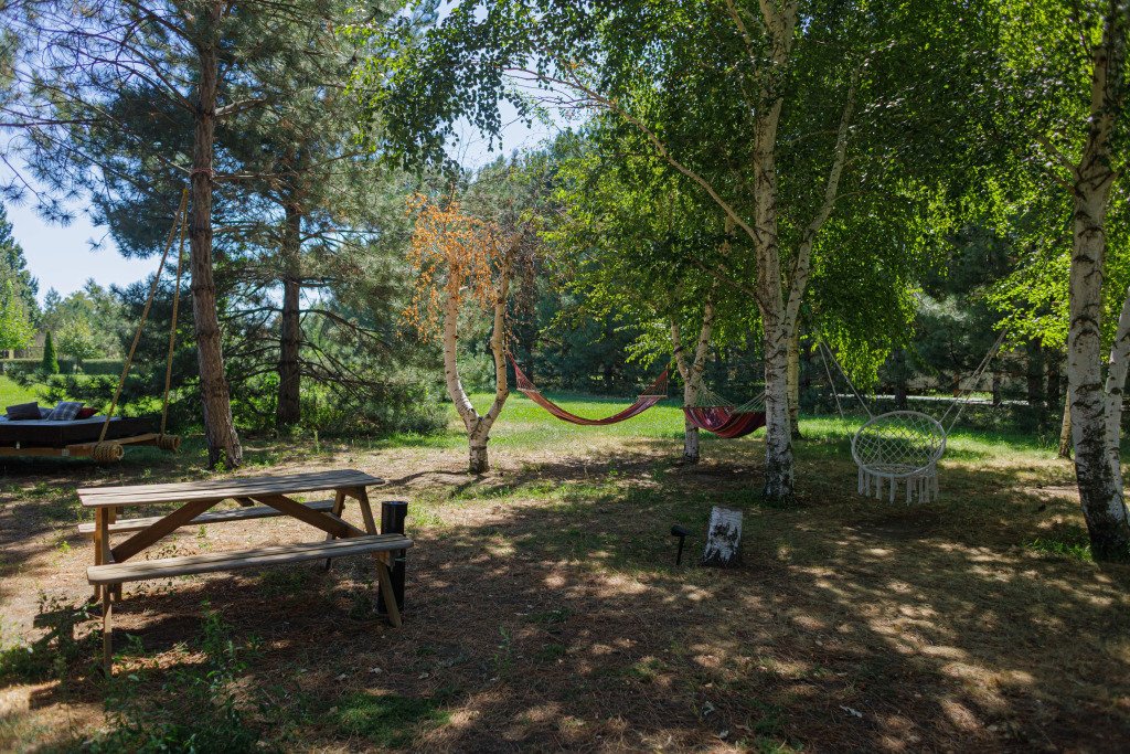 На расположенном в 2 гектарах просторном участке находится гостевой дом с баней «Лесной», окруженный великолепными многолетними соснами, елками и березами. Это отличное место для семейного отдыха или посиделок с друзьями, а также идеальное место для проведения девичников, ретритов, семинаров, женских кругов, или выездных тренингов.