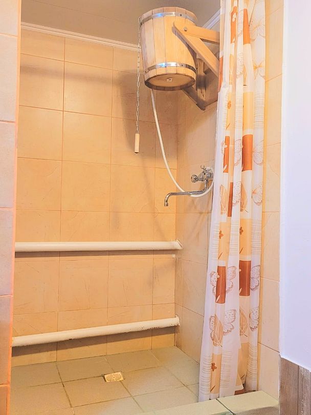 Парная, веник, кадушка для обливания с холодной водой. С чайной зоной.