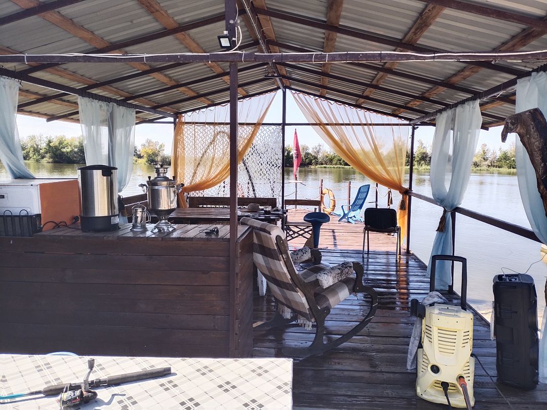 Беседка крытая, на берегу реки, есть все для отдыха и рыбалки на выходные.