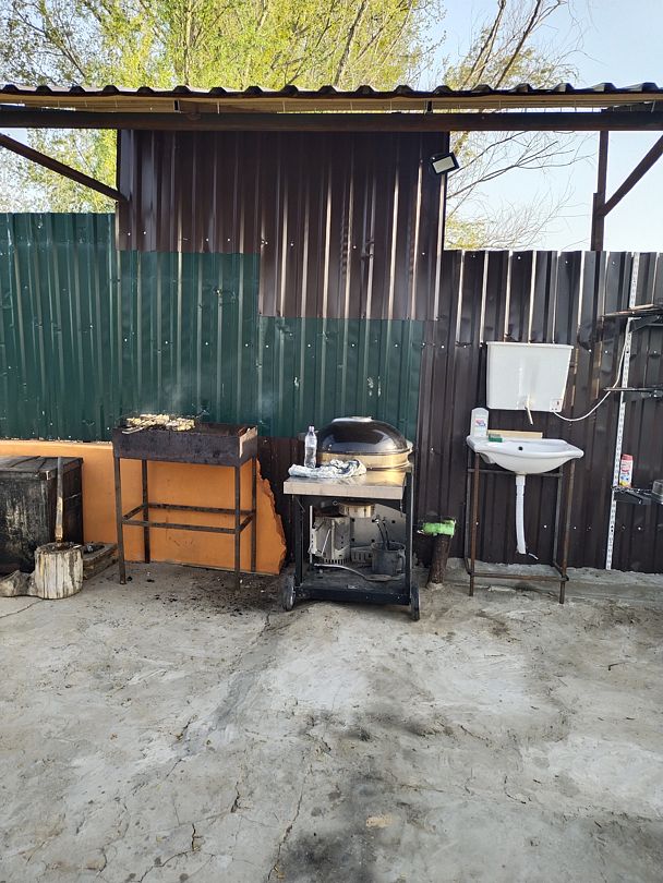 Мангал, коптилка горячего копчения, коптилка холодного копчения, барбекю, удочки для рыбалки с беседки, холодильник, термопод с горячим чаем, посуда на 6 человек. Туалет.