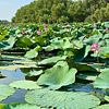 «Домики в лотосах» находится в Астраханской области, в селе Раздор Камызякского района.
