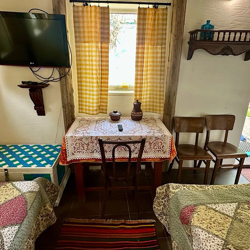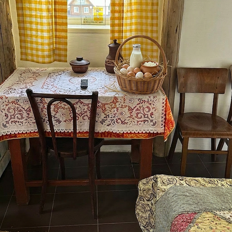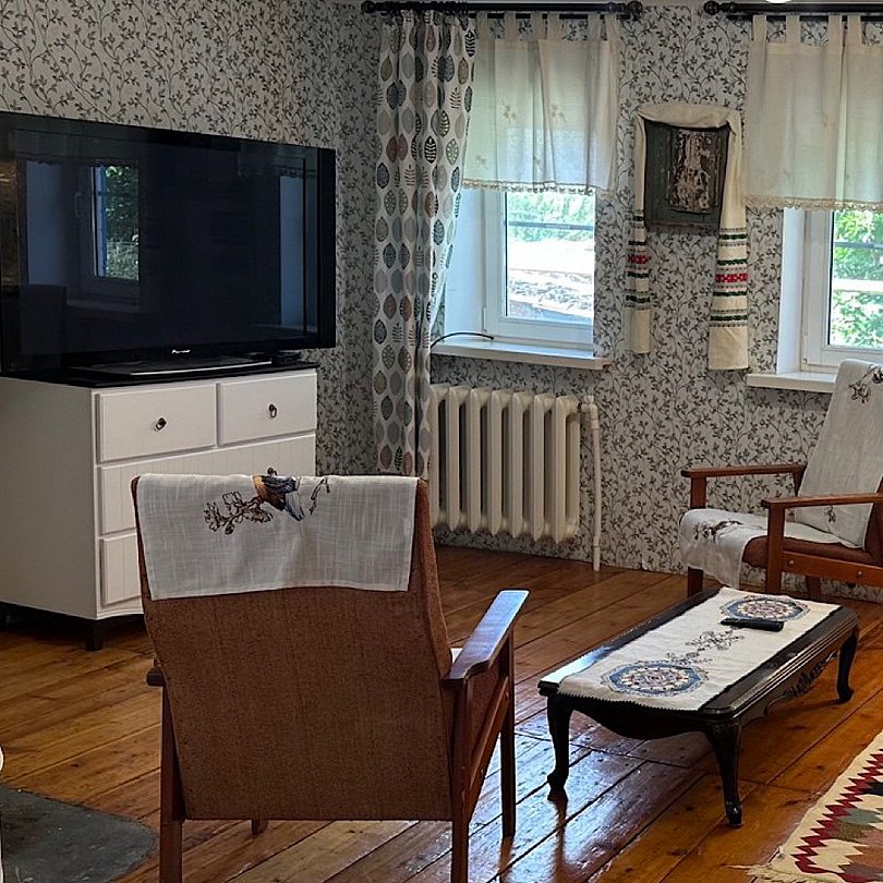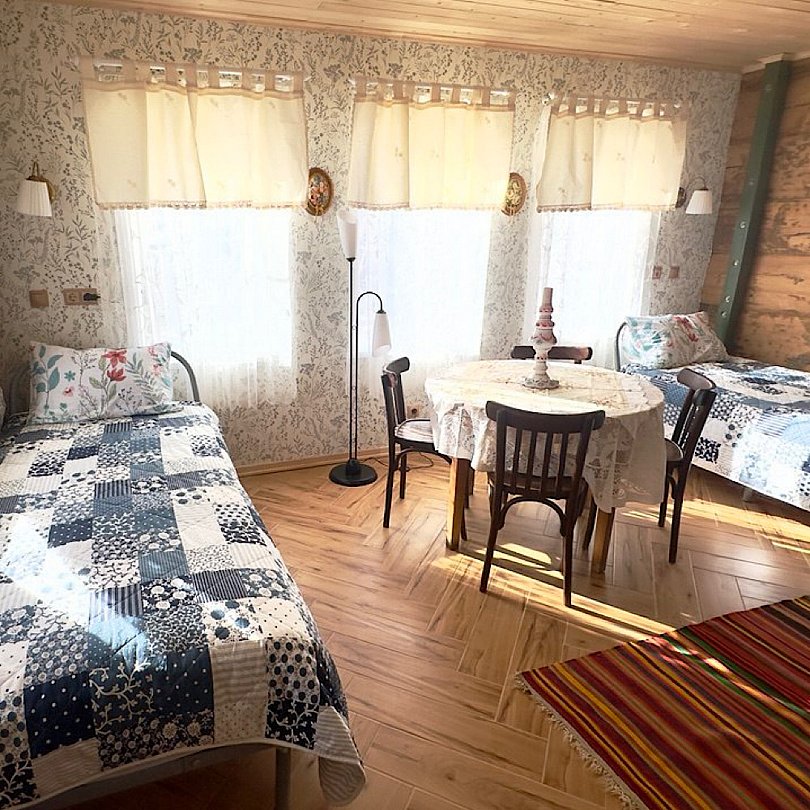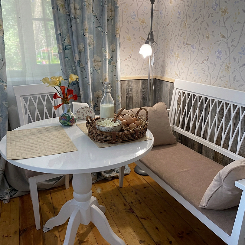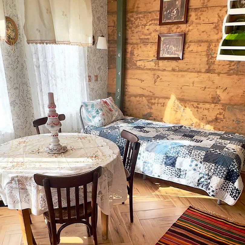 Гостей ждет радушный прием в доме с почти вековой историей, сохранившем свою неповторимую атмосферу. Хозяева просят с уважением относиться к бережно восстановленным стенам, современному оснащению и каждой детали интерьера, создающей особый уют. Многие вещи в доме — это отреставрированные предметы старины или привезенные издалека элементы, поддерживающие деревенский стиль и хранящие свою историю.
