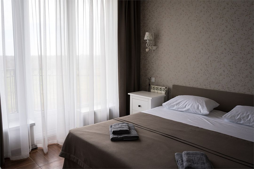 Комфортабельный двухместный номер, рассчитанный на размещение 2-х человек. В номере: двуспальная кровать, санузел, душ, туалетные принадлежности, халаты вафельные (при размещении более 3 суток), тапочки (при размещении более 3 суток), холодильник, чайник, набор посуды с комплектом столовых приборов, вместительный шкаф с комплектом вешалок, регулируемая система кондиционирования, номер телефона для связи с администратором, пожарная сигнализация, фен, утюг и гладильные принадлежности (по запросу), Wi-Fi. Уборка в номерах производится ежедневно, смена постельного белья и полотенец – каждые 3 дня.