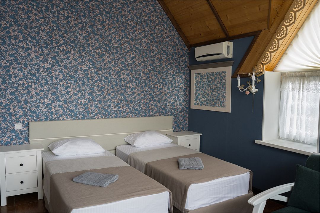 Комфортабельный номер, рассчитанный на размещение 2-х человек. В номере: 2 односпальные кровати, санузел, душ, туалетные принадлежности, халаты вафельные (при размещении более 3 суток), тапочки (при размещении более 3 суток), холодильник, чайник, набор посуды с комплектом столовых приборов, вместительный шкаф с комплектом вешалок, регулируемая система кондиционирования, номер телефона для связи с администратором, пожарная сигнализация, фен, утюг и гладильные принадлежности (по запросу), Wi-Fi. Уборка в номерах производится ежедневно, смена постельного белья и полотенец – каждые 3 дня. Имеется 1 доп.место кресло-кровать.