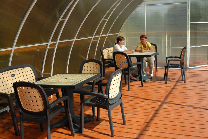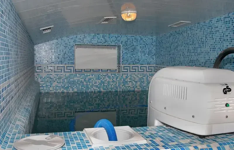 В небольшом закрытом бассейне можно побаловать себя водными процедурами и приятно провести время.