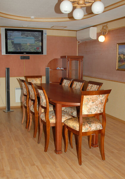 В гостинице представлены 13 номеров разных категорий: полу-люкс - 5.Номер полу-люкс оборудован двумя односпальными кроватями, столиком, шкафом и двумя стульями.