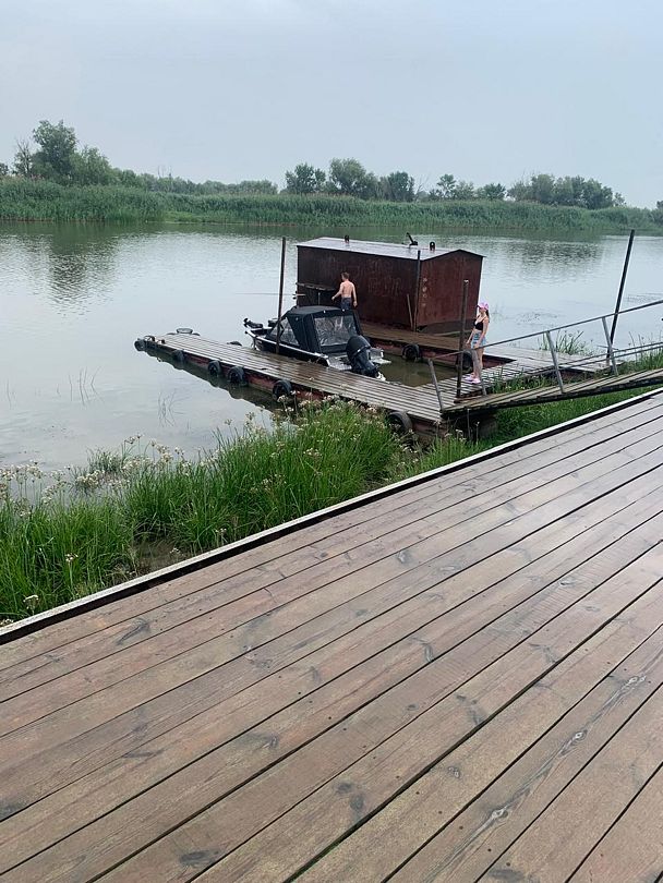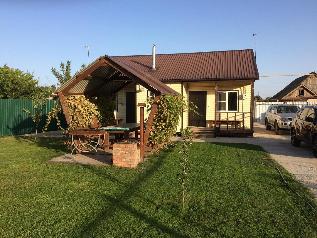 Гостевой дом расположен в 60 км ниже Астрахани, на берегу реки Казань (до воды 10 метров), в селе Караульное Камызякского района, Астраханской области. До раскатов полчаса на катере. На участке расположены 2 отдельно стоящих дома. Дом №1 состоит из двух изолированных половин, в каждой из которых есть спальня на 3 человека, полностью оборудованная кухня, санузел. Телевизор, холодильник, стиральная машина. Газ, свет, вода (горячая и холодная), сплит система - круглый год. Морозильные лари. На территории стоянка для авто, уютная беседка с мангалом и коптилкой, на берегу бетонный спуск для катеров в воду, плавающий понтон для причала и рыбалки. Рядом хороший магазин. 2 дом рассчитан на 4-6 человек, благоустроенный. Состоит из 3-х комнат, гостиной и кухни. В нем есть газ, свет, вода (горячая и холодная), сплитсистема, душ, туалет, телевизор, стиральная машина, кухня полностью оборудована для приготовления пищи. Морозильный ларь.