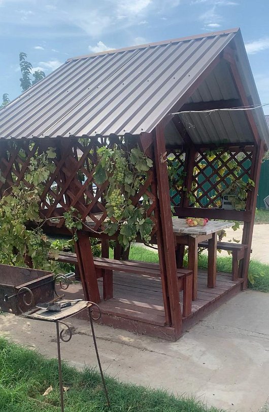 Дом старой постройки рассчитан на 4-6 человек, благоустроенный, Состоит из 3-х комнат, гостиной и кухни. В нем есть газ, свет, вода (горячая и холодная), сплит система, душ, туалет, телевизор, стиральная машина, кухня полностью оборудована для приготовления пищи. Морозильный ларь.