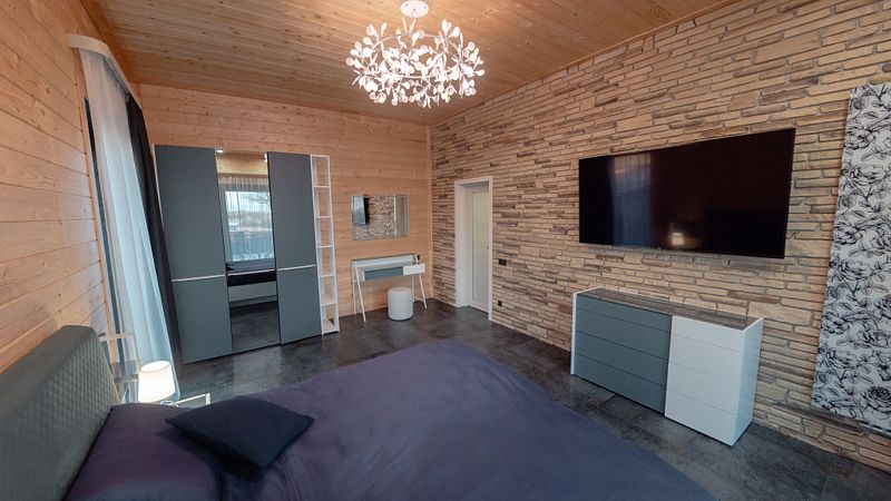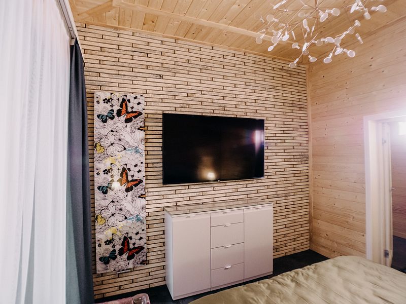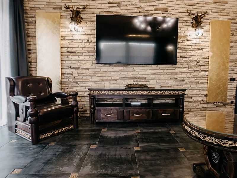 В гостиных и столовой телевизоры 85", интернет-ТВ вещание с расширенным списком каналов, акустическая система, Wi-Fi.