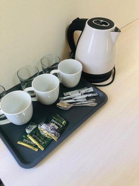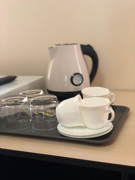 В номере необходимая мебель, техника (электрический чайник ,холодильник, кондиционер, телевизор),пакетик чая и сахар. В ванной – туалет, раковина, ванная или душ поддон .Полотенца и набор гигиенических принадлежностей (одноразовое мыло, шампунь, гель).