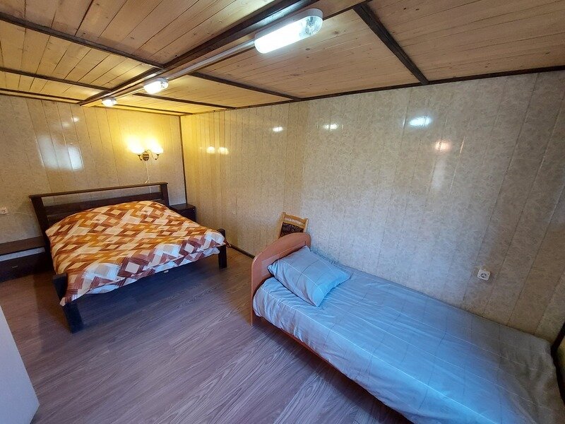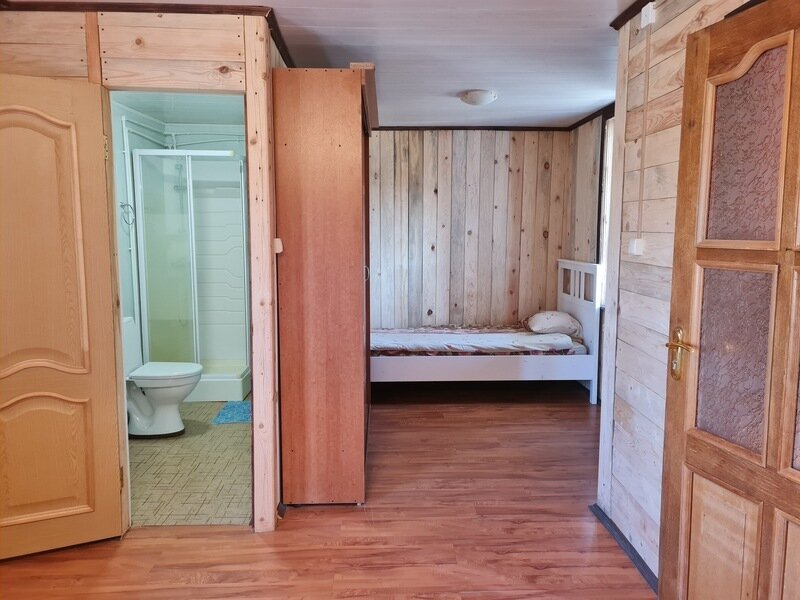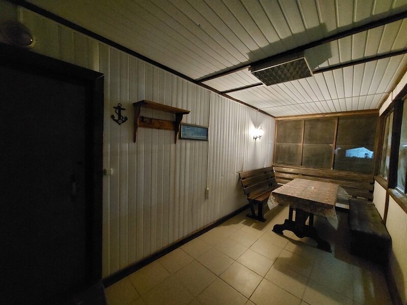 Инфраструктура: территория базы огорожена, освещена и занимает более 1 гектара. База располагает 6 жилыми помещениями различной степени комфортабельности, площади и обустройства: от большого 2-х этажного дома рассчитанного на 9 человек до небольшой комнаты эконом на 2-3 человек. Все дома оборудованы полноценными кухнями для самостоятельного приготовления пищи. База идеальна для любителей тихого семейного отдыха и небольших компаний. Есть сушилки для рыбы, коптильни, морозильные лари, охраняемый причал для лодок, тир и небольшая детская площадка. Вода колодезная.