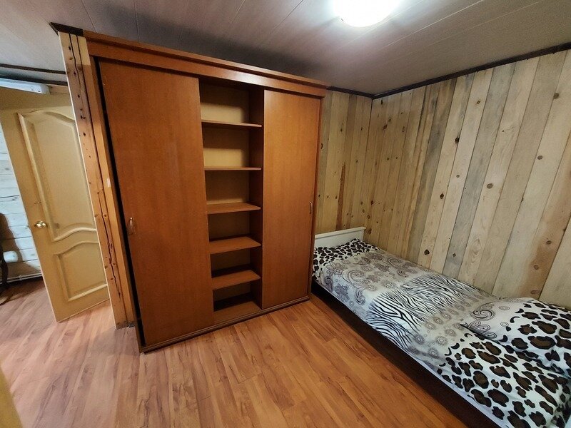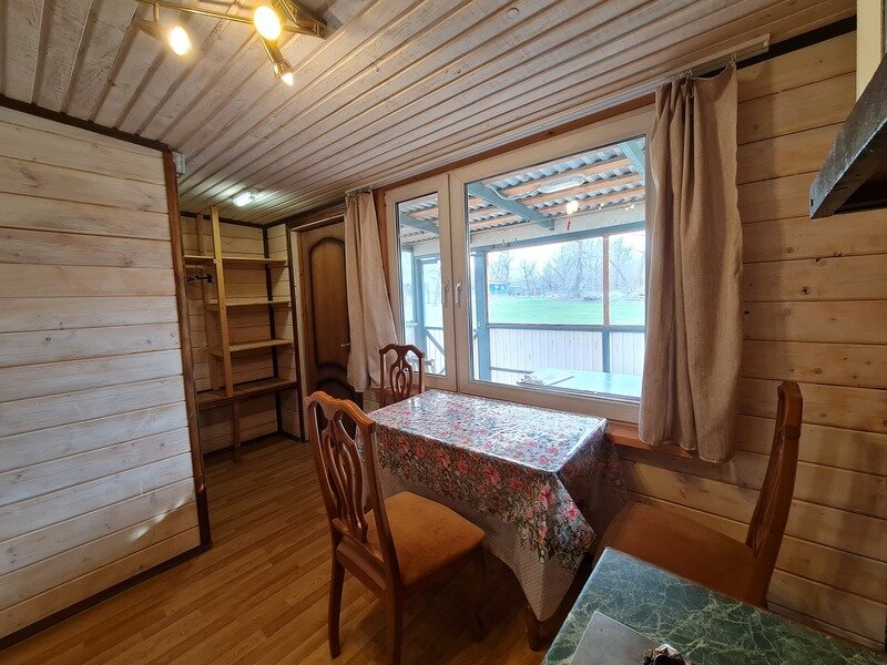 Симпатичный и уютный домик. Материал отделки дома — натуральное дерево. Одноэтажный дом. В доме горячая и холодная вода, спальная комната, кухня, санузел, терраса.