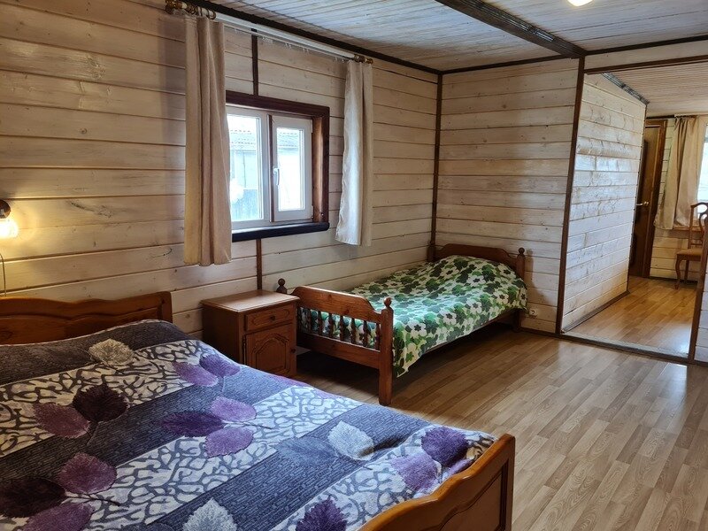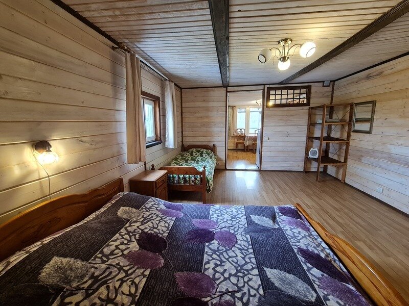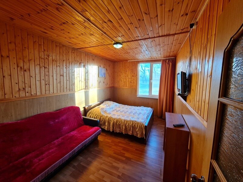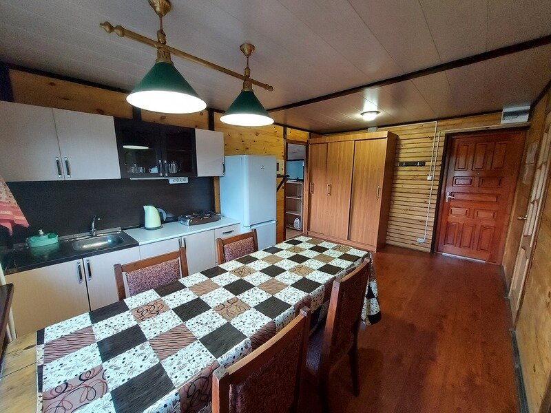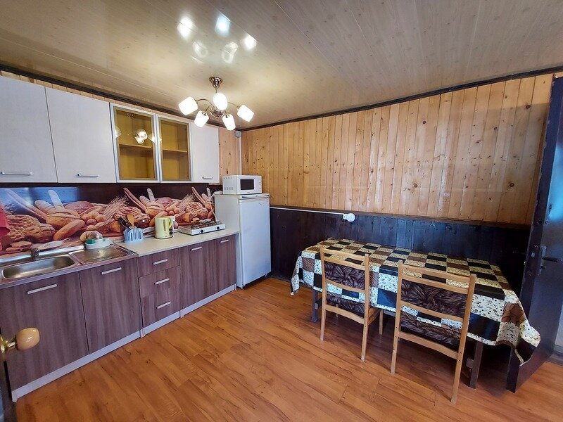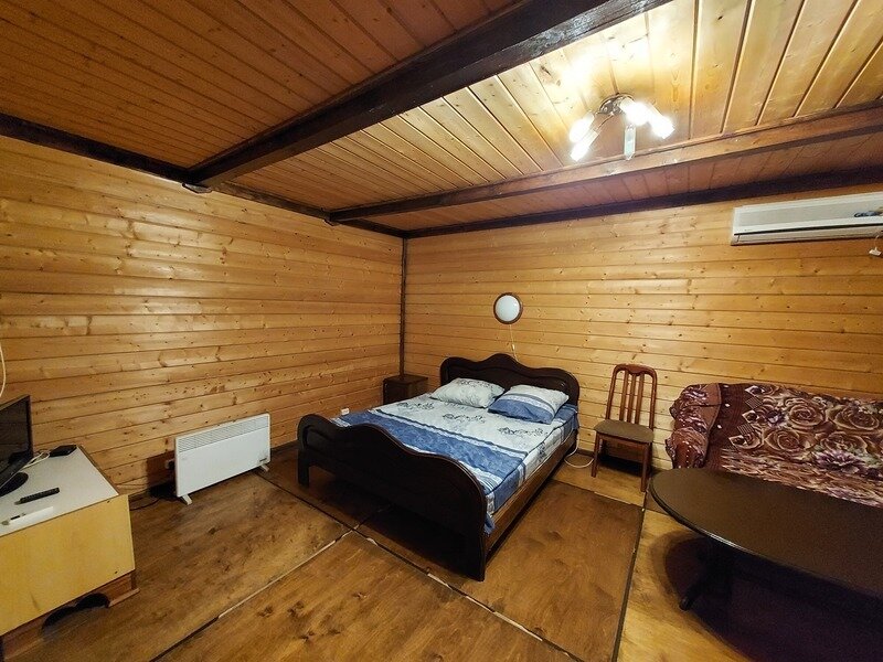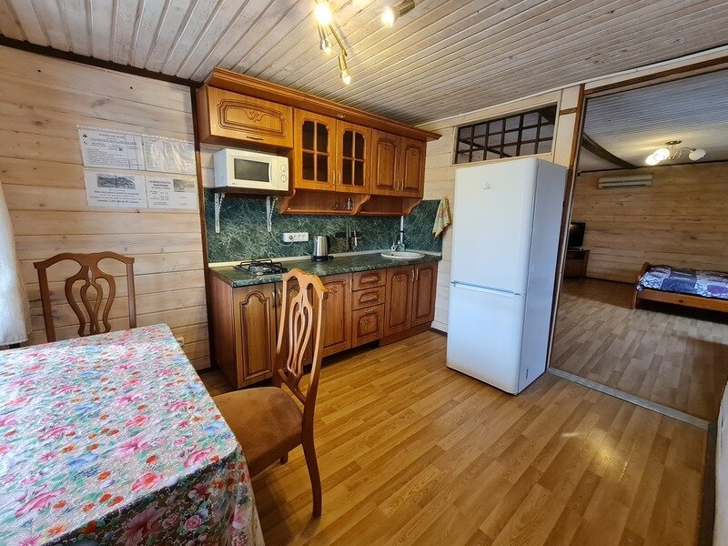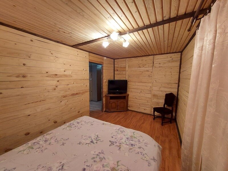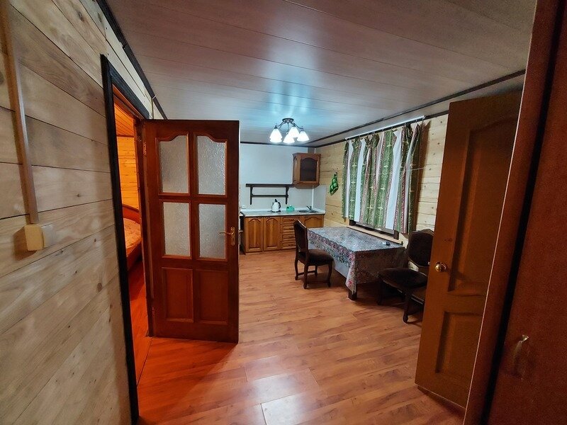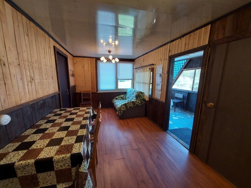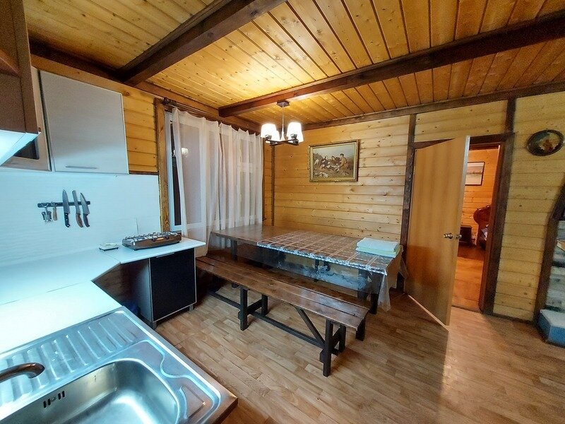 Одноэтажный дом. Отлично подойдет для небольшой компании или семьи. Дом отделан натуральным деревом.