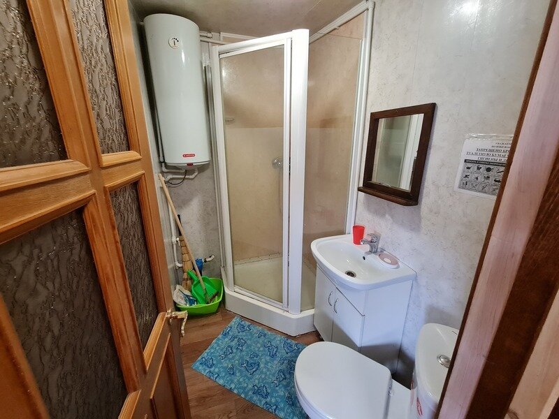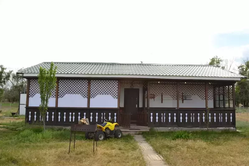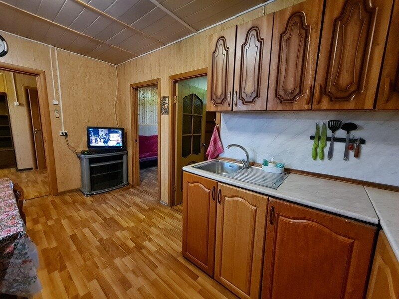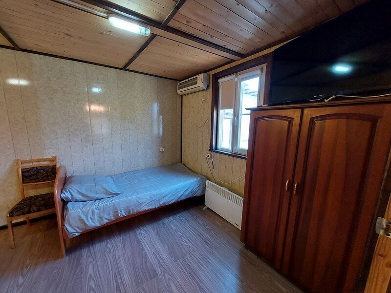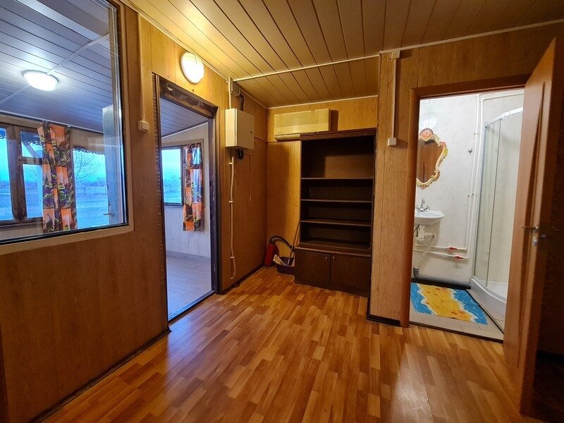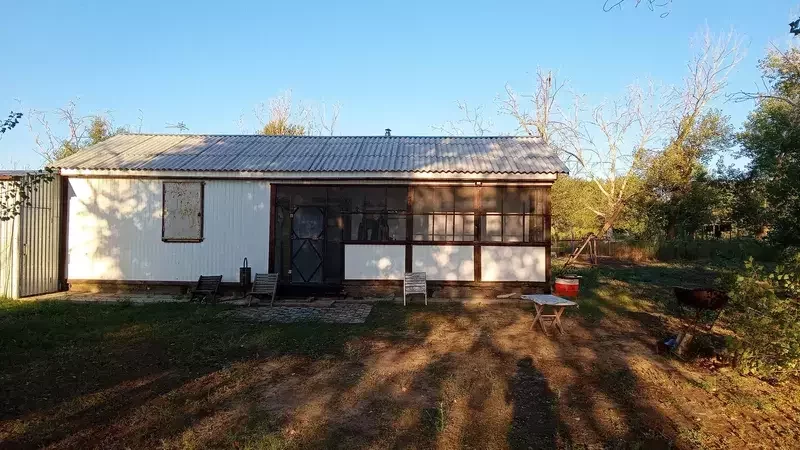 Одноэтажный дом. В доме горячая и холодная вода. В доме 2 большие изолированные спальные комнаты по 30 кв м, кухня, санузел, терраса.