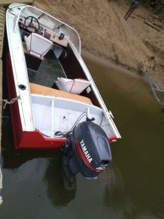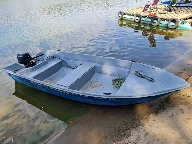 Мотор – SUZUKI 15 л. с. (4 такта) с дистанционным управлением двигателя без гидроподъема. Рулевое управление.