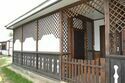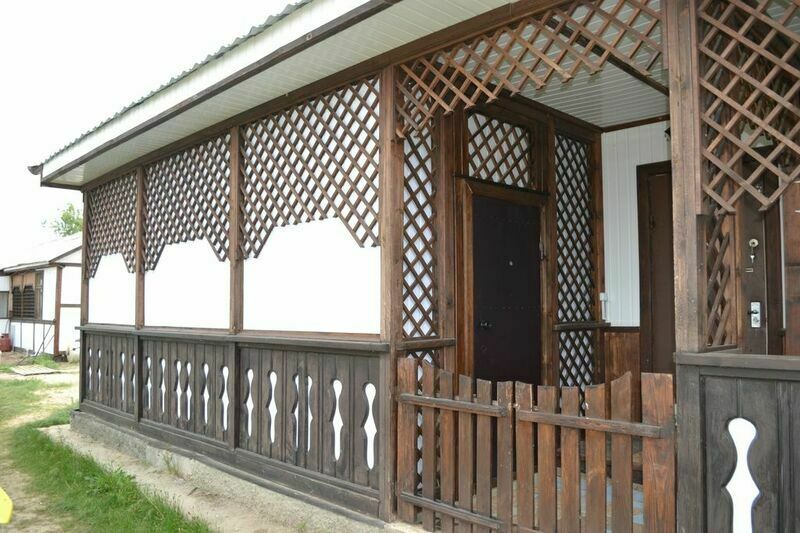 При доме открытая терраса с противомоскитной сеткой. Освещена и меблирована.
