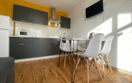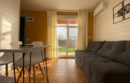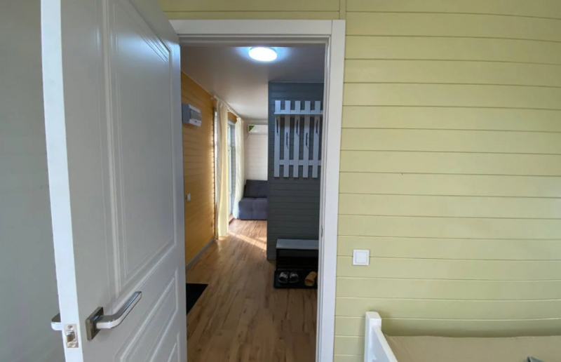 Кухни-гостиные оснащены так, чтоб в них была возможна полноценная готовка и отдых: холодильник, микроволновка, безимпульсная индукционная плитка, мощная вытяжка, набор посуды из 2х кастрюль, большой сковороды и всех необходимых столовых приборов, там же расположен большой диван для отдыха, стол и стулья, телевизор и кондиционер. Санузел с ванной (актуально в прохладное время года) и бойлером на 100 литров; спальня — 2 односпальных кровати из массива дерева, специальные орто-матрасы, выдерживающие нагрузку до 140 кг, новое хлопковое постельное, подушки из натурального гусиного пуха (сон будет сладким), по 2 полотенца на каждого гостя.