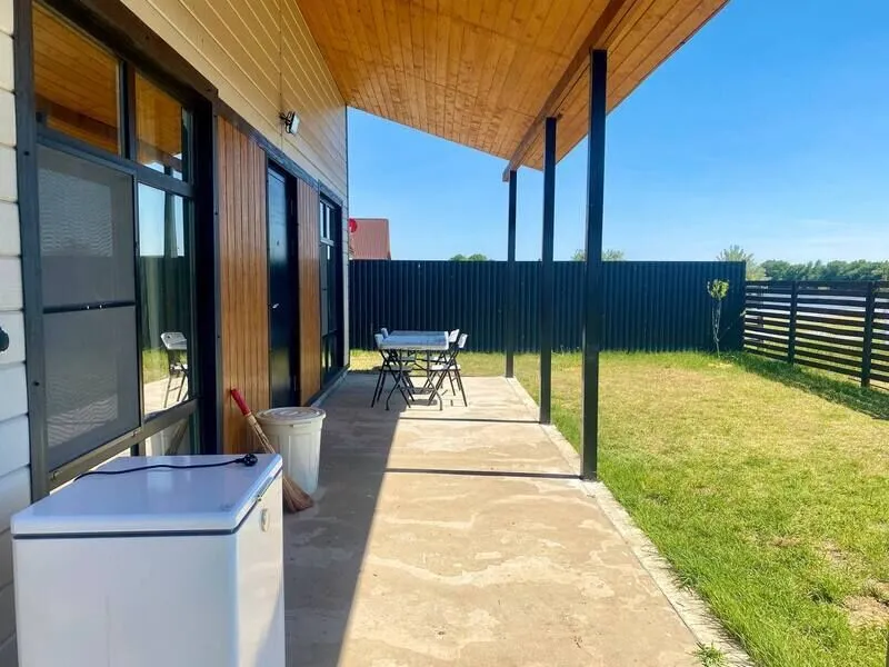 Каждый домик автономен: свой собственный заезд (ваше авто всегда рядом с вашим домом), огороженный собственный двор в 3 сотки, веранда под навесом, садовая мебель, своя морозильная камера на 140 литров.