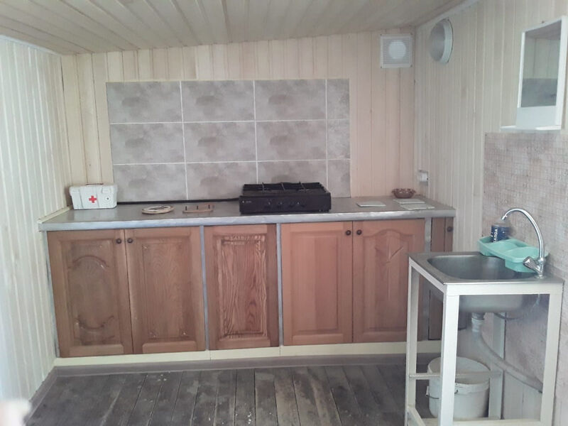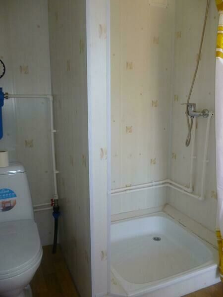 Размер 6х6 метров, веранда 6х2 метра. Сплит-система, умывальник, душевая кабина, унитаз. Общая комната.