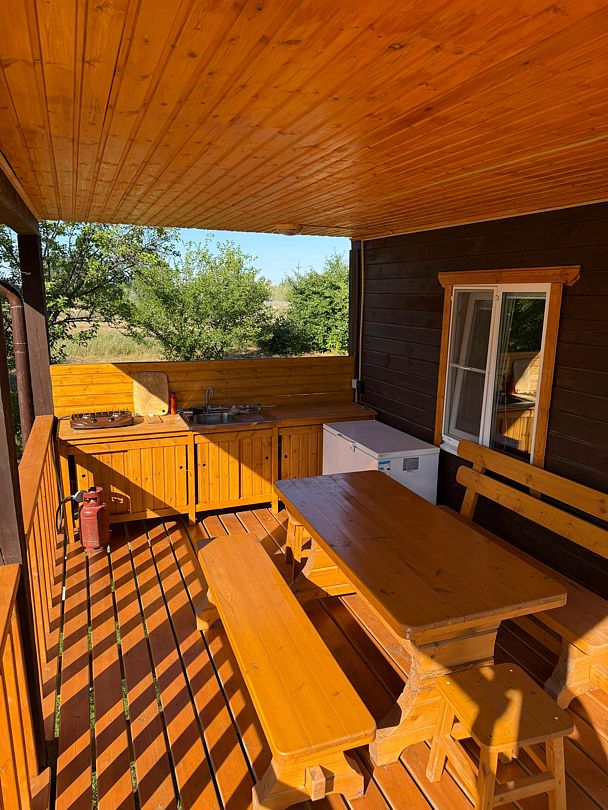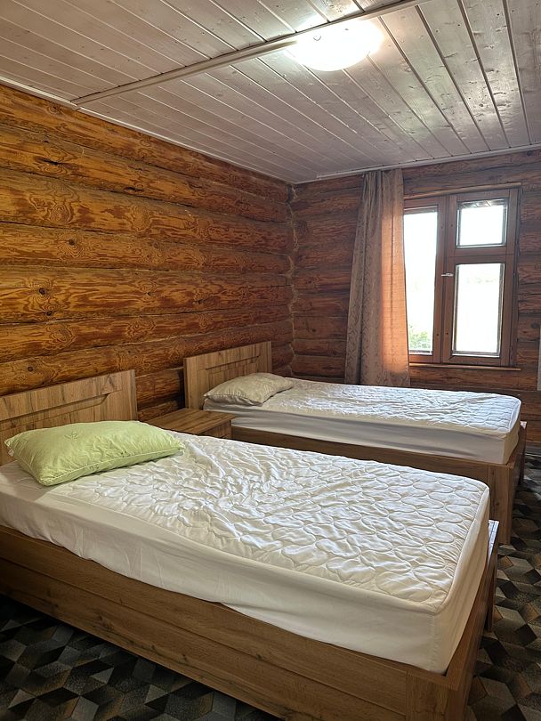 На 6-ти гектарах земли расположились уютные домики, построенные из натурального дерева. Радуют глаз прекрасные цветники, за которыми заботливо ухаживают. Небольшая веранда, расположенная у каждого домика, укроет Вас от дождя и жаркого зноя. Внутри дома, для комфортного проживания, присутствует вся необходимая техника — телевизор, холодильник, сплитсистема, камин.