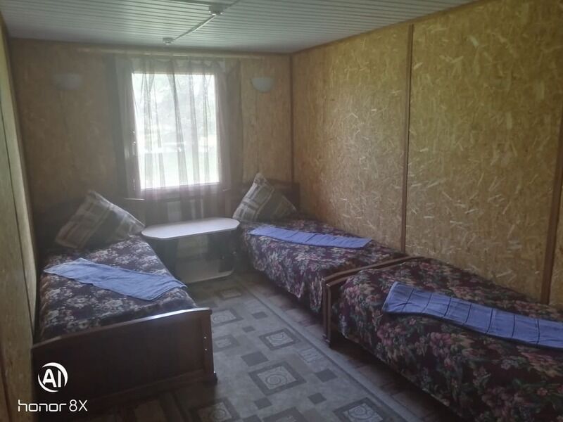 Размещение на турбазе организовано в двух-трех комнатных домиках на шесть человек и гостиничных номерах на двух - трех человек. Организовано трехразовое питание.