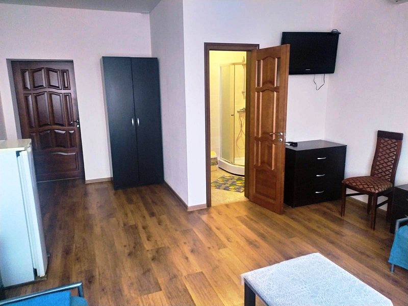 Комфортный номер со всеми благами цивилизации: туалетом, душем, телевизором, холодильником, СВЧ-печью, электрическим чайником.
