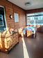 Двухкомнатный домик у озера состоит из спальни и гостиной. В гостиной располагается двухспальная кровать и прикроватные тумбочки, в гостиной раскладной диван, кондиционер, телевизор. В доме имеется собственная кухня с микроволновой печью, холодильником, набором посуды и холодильником. Все удобства душ и санузел в доме есть.