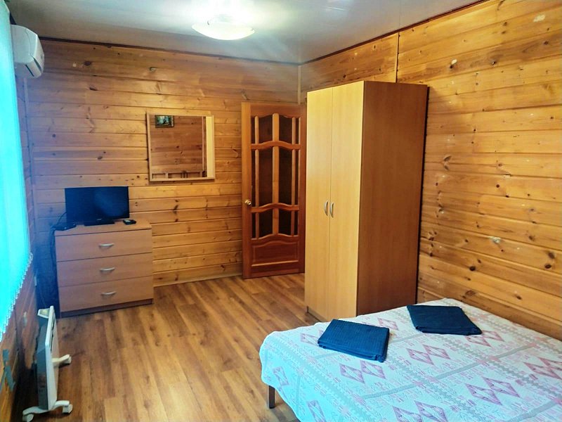 Комфортабельный дом с санузлом, душем, кухней, телевизором, сплит-системой. В доме 2 односпальные кровати и раскладной диван. В холодное время года предусмотрено отопление конвектором.