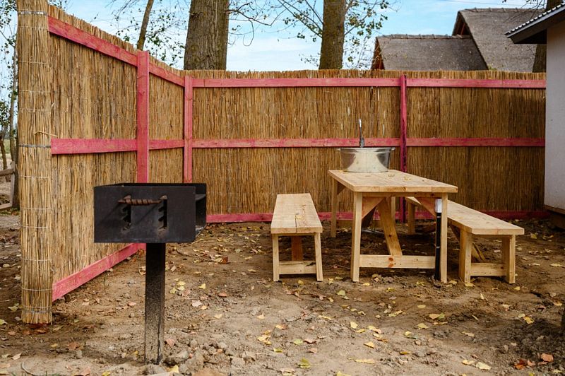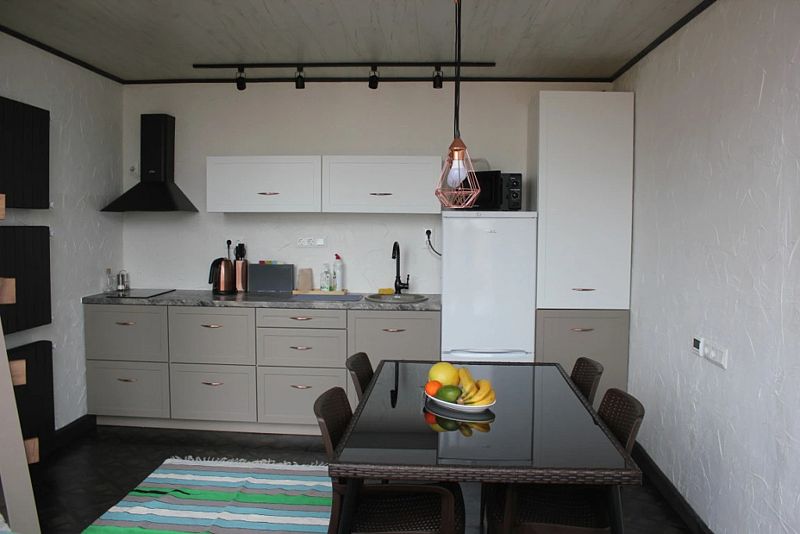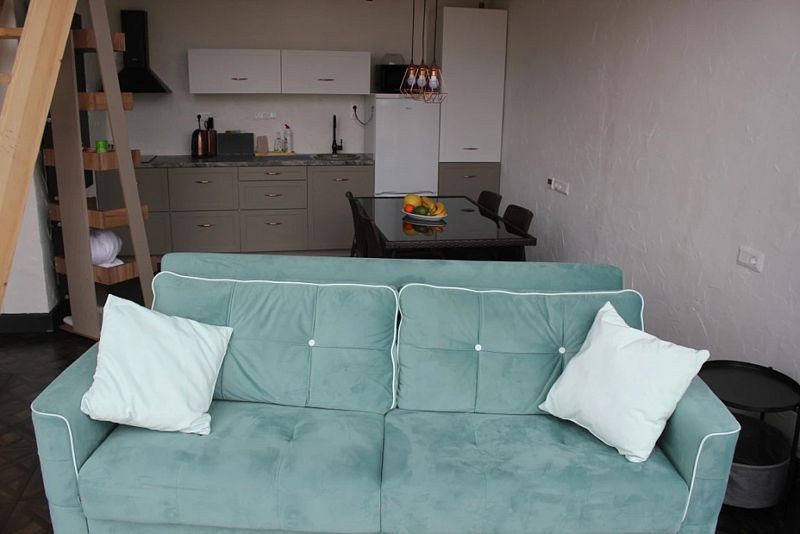 В распоряжении гостей мангальная зона, в номере — кондиционер, холодильник, микроволновая печь, чайник, посуда и кухонные принадлежности.