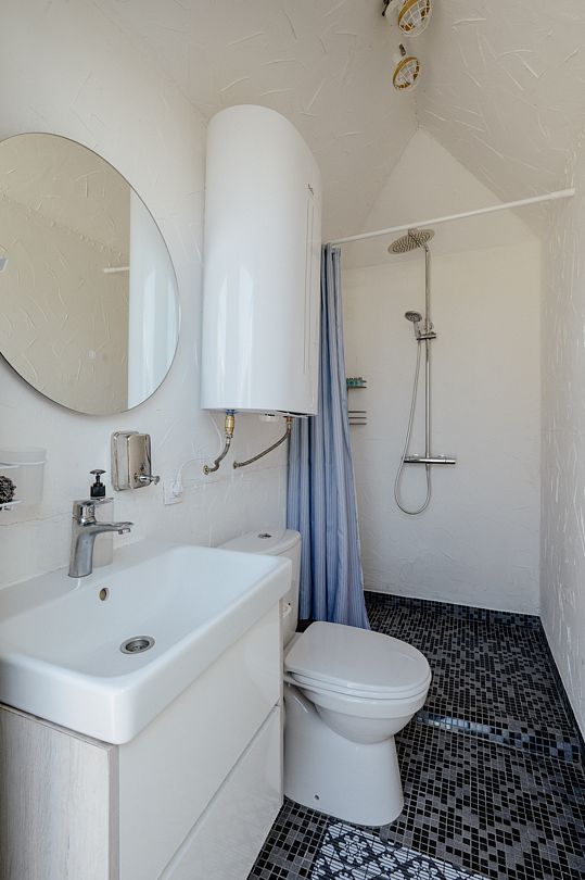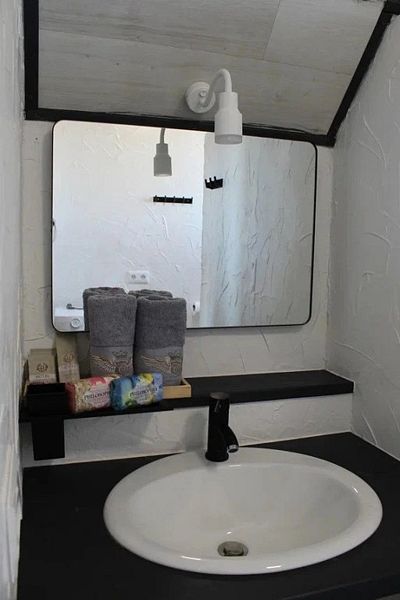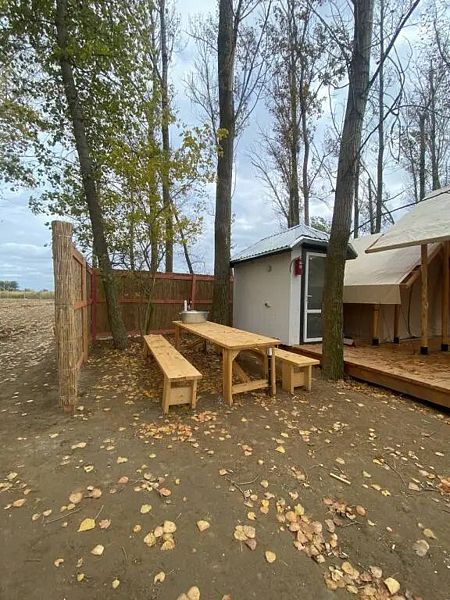 У каждого глэмпинга имеется летний душ. На территории предусмотрен общий санузел с душем.
