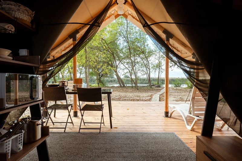 На территории глэмпинга есть возможность аренды лодок, катера, рыбалки и активного отдыха.
