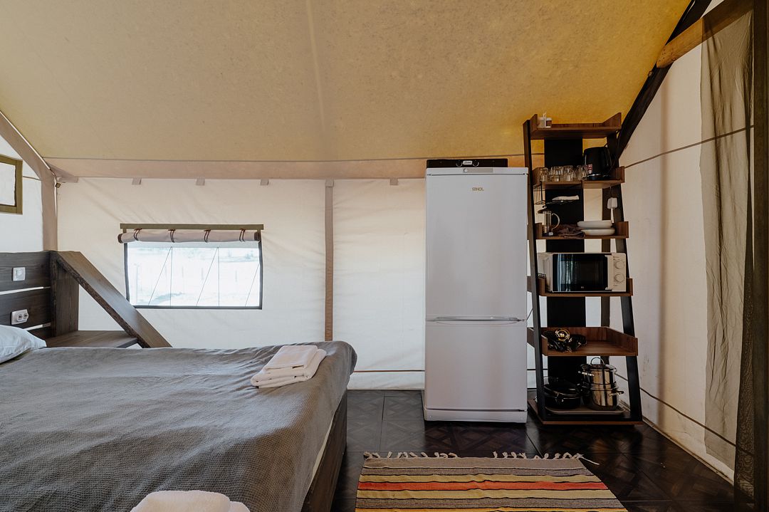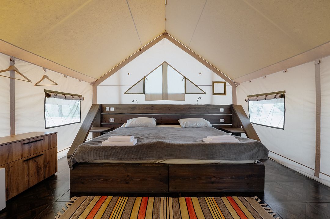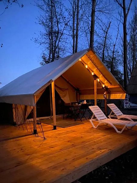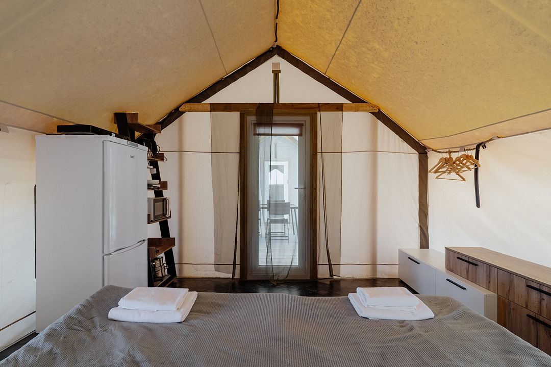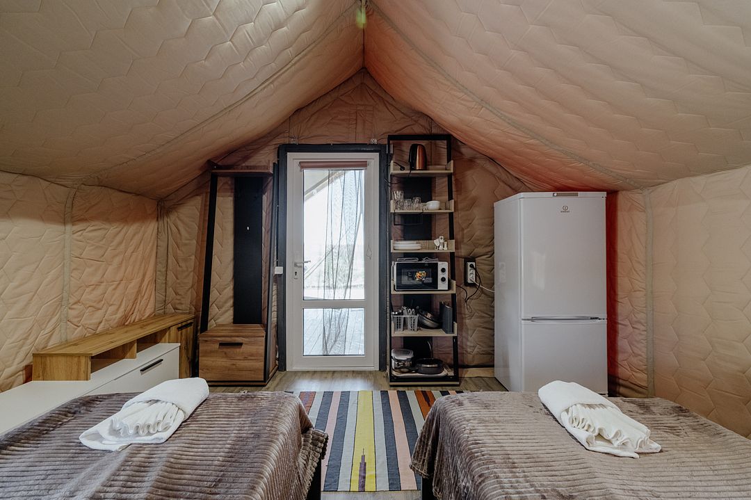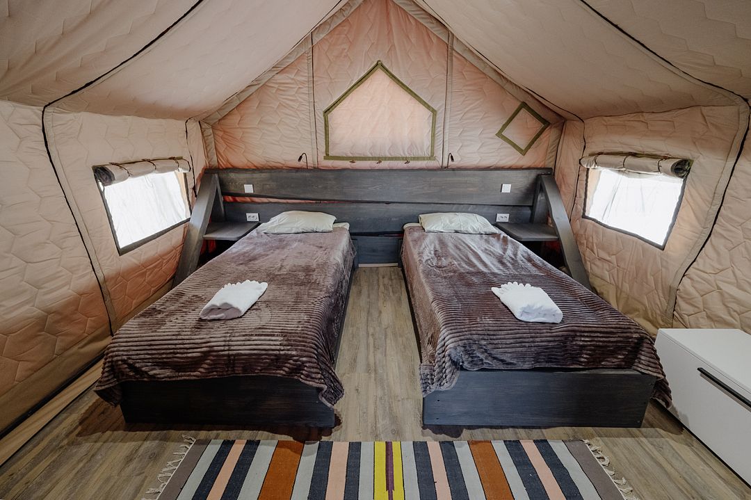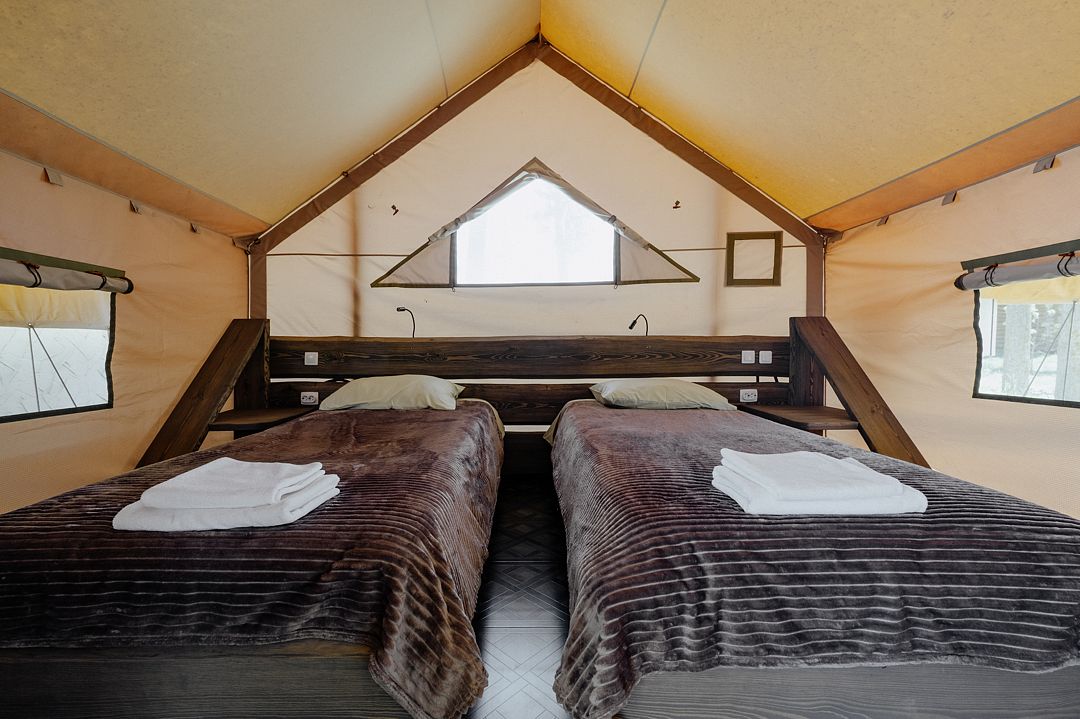 16 м2 · 2-х местный сафари-тент + 1 доп. место