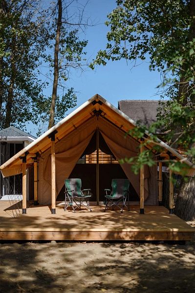 Сафари-Тент двухместный, 24 м². Вместимость до 3 мест. Один ребёнок до 12 лет — может разместиться без отдельного спального места.