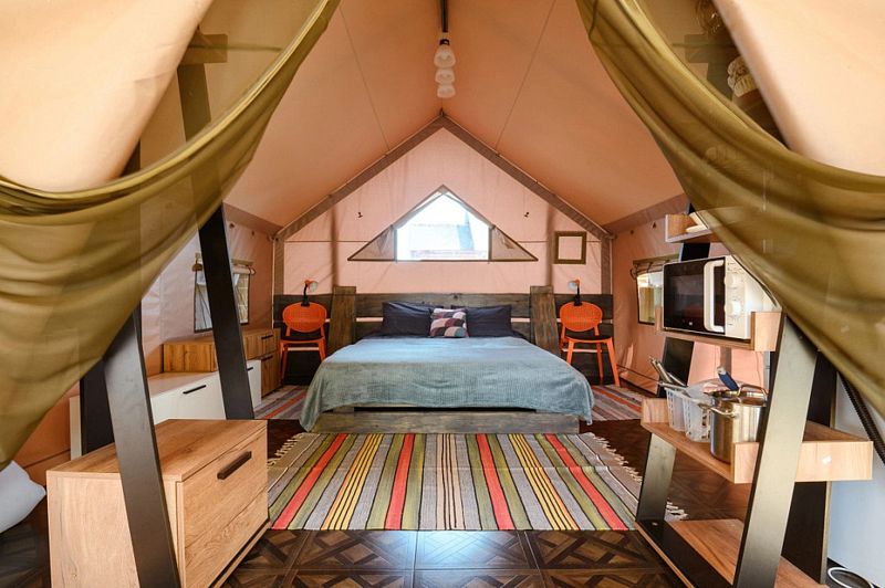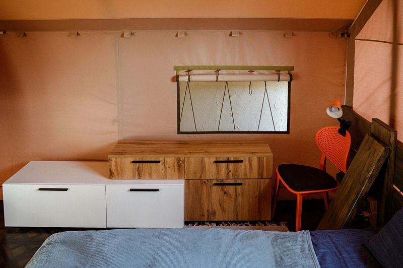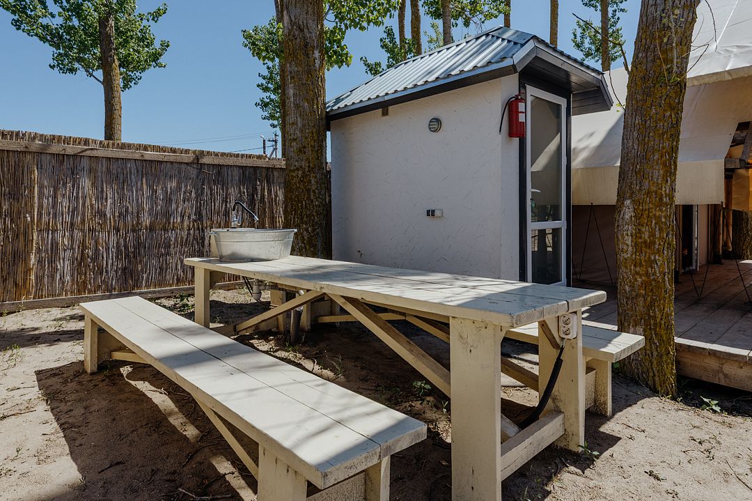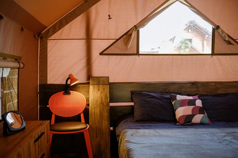 Ванная комната находится в сафари-тенте
