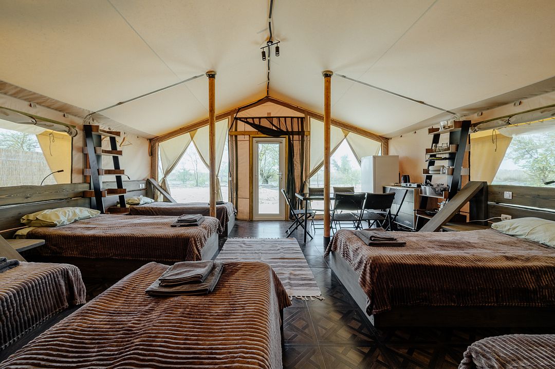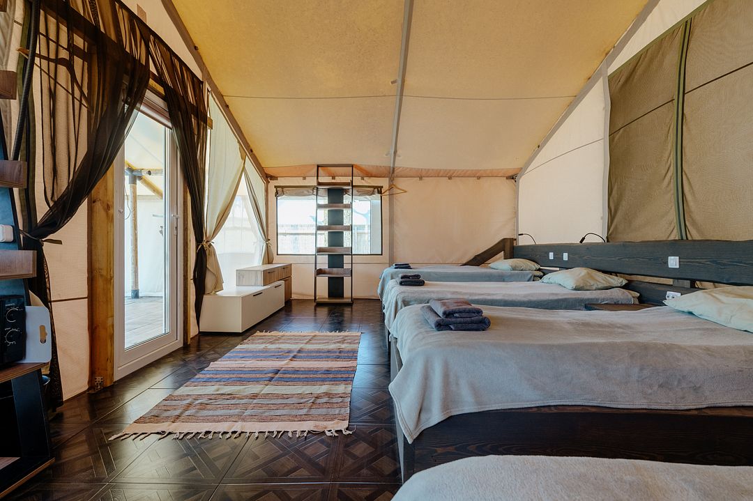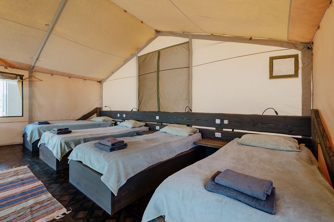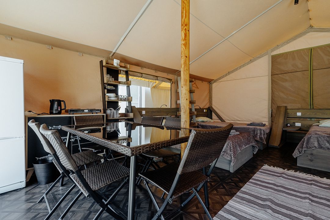 36 м2 · 4-х местный сафари-тент + 1 доп. место