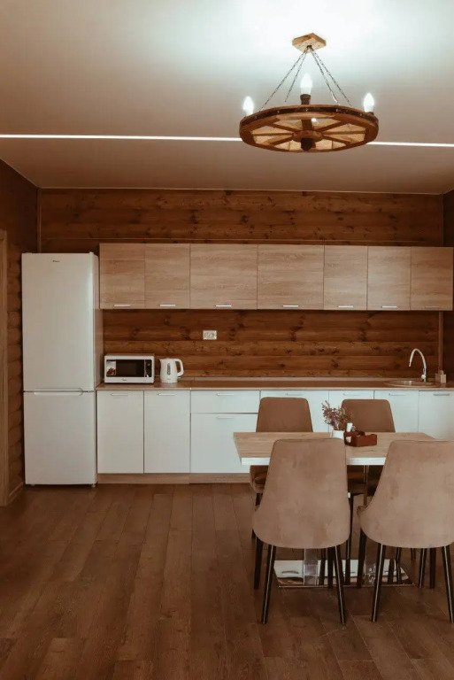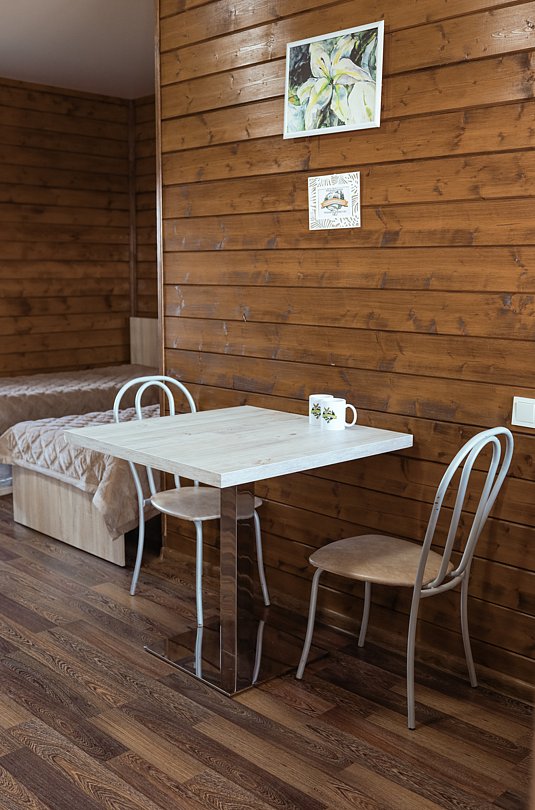 В некоторые тарифы питание включено в стоимость проживания. Дополнительно за отдельную плату можно приобрести комплексное питание в кафе на территории. Помимо этого, номера оснащены холодильником, чайником и набором посуды. А в доме имеется еще и микроволновая печь.