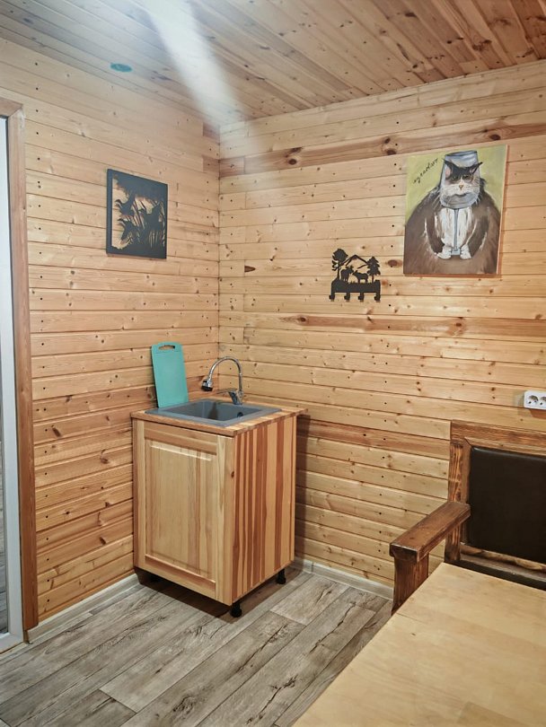 В доме есть оборудованная кухня (эл. чайник, холодильник).
