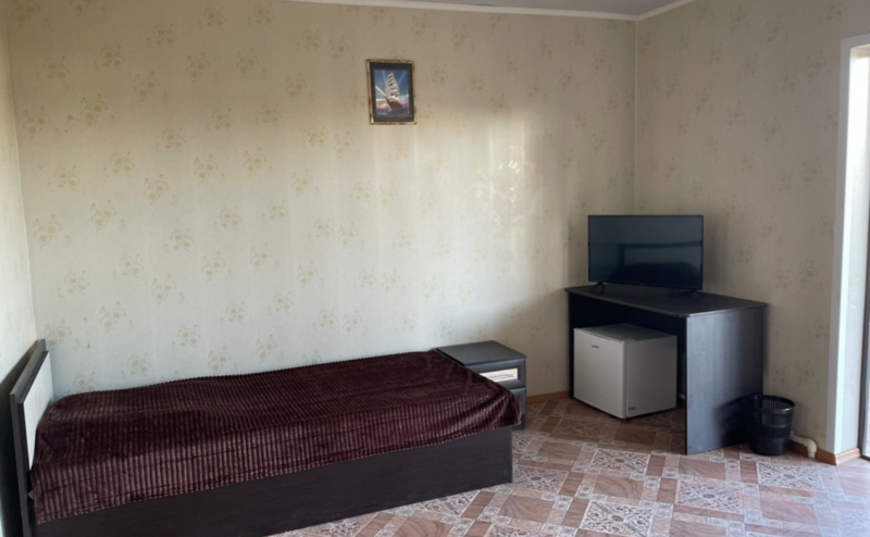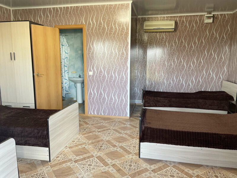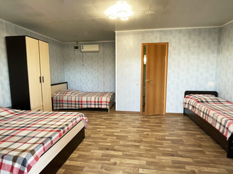 Номер площадью 22 кв. м укомплектован сплит-системой, мини-холодильником, TV, двумя полутороспальными и одной односпальной кроватью, а также душем, умывальником и туалетом.