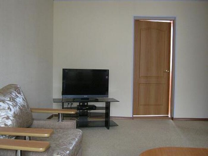 Две спальни (по 2 кровати), гостиная (двуспальный диван), санузел.