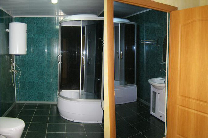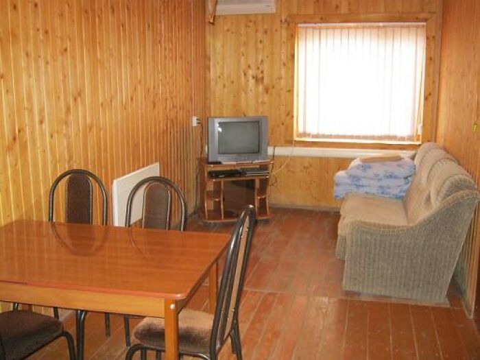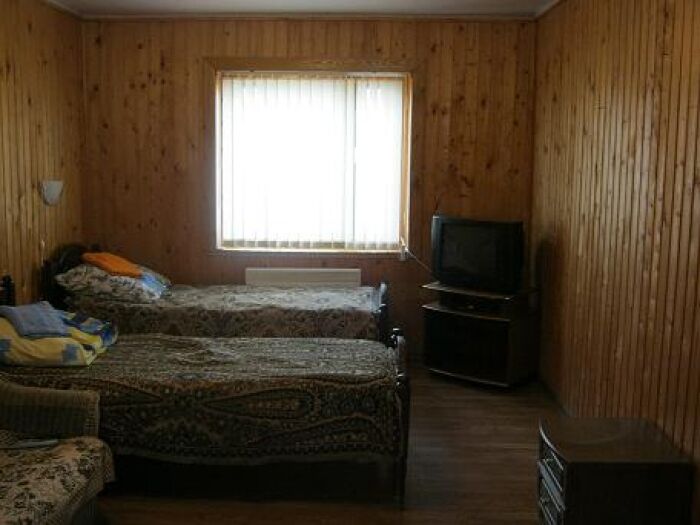Одна большая комната (4 кровати плюс двухспальный диван), санузел.