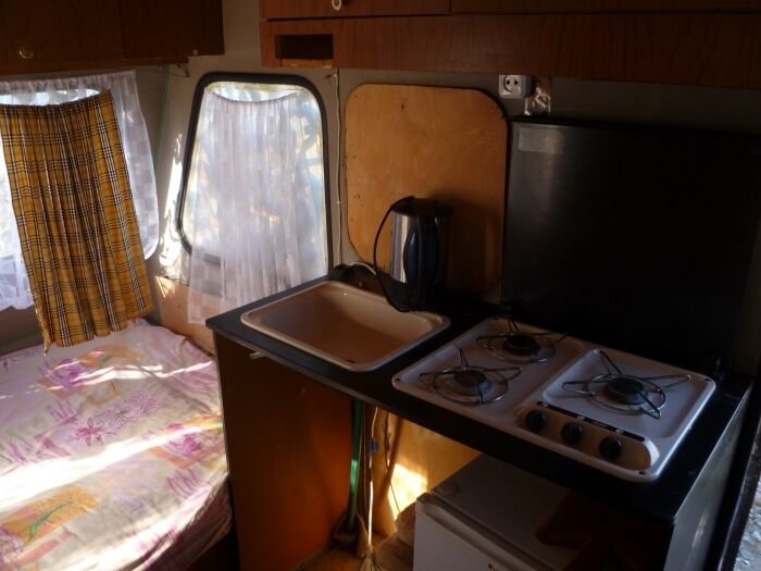 Электричество, кондиционер, система отопления, холодильник, электрочайник, набор посуды, газовая плита, санузел (туалет + душ) на улице (утепленный).