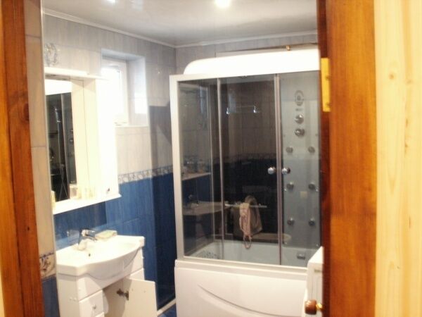 В доме есть с/у, оборудованная кухня (посуда, холодильник, микроволновая печь, плита), две комнаты с кроватями и сплит-системами.